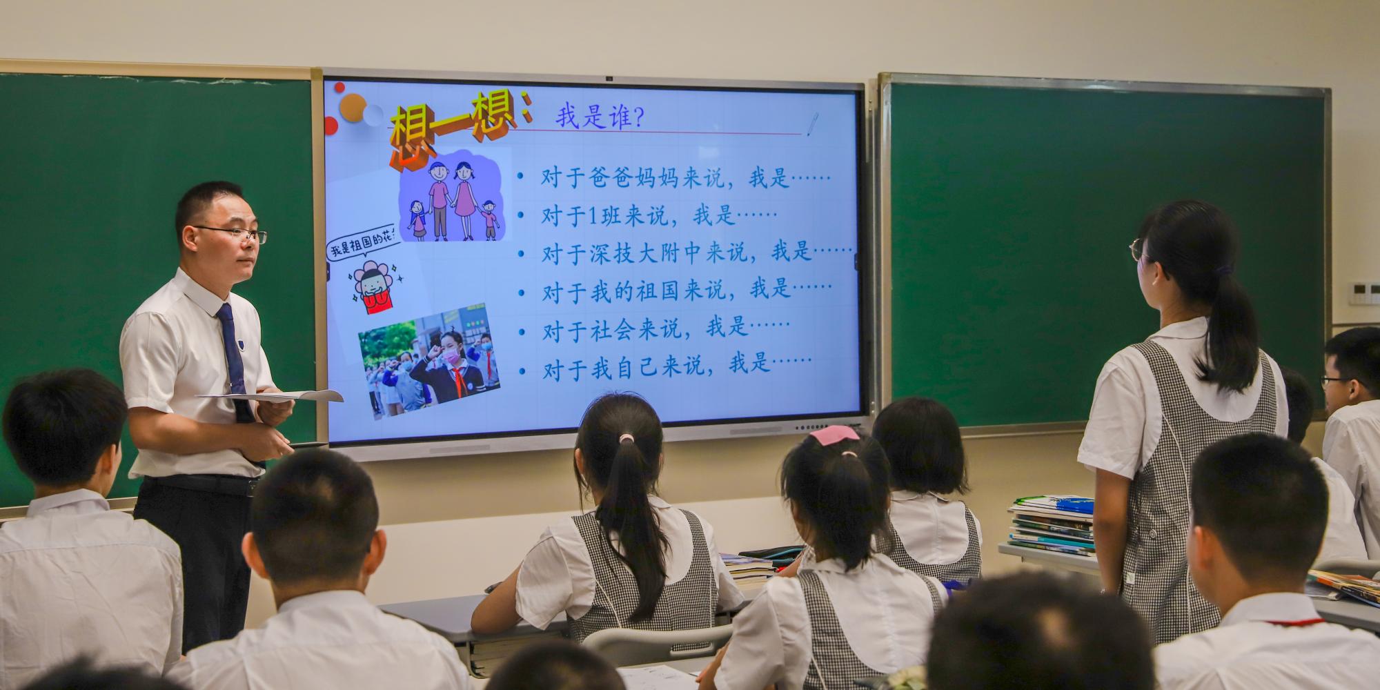 然后章老师又鼓励同学们思考“为了谁”。“天下兴亡,匹夫有责”,个人要把自己的命运根植在时代和祖国的命运中,今天你只是一株小幼苗,但只要你学会负责,明天你就是华夏的栋梁!
