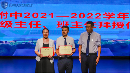 为提升班主任团队的凝聚力,加强班主任队伍建设,增进班主任归属感,我校于9月13日下午16:30在报告厅举行了2021——2022学年年级主任、班主任拜授仪式。田祚鹏校长亲自为每一个年级主任、班主任颁发聘任证书,给每个年级主任、班主任深深地鞠了一躬,以此表达对这群可亲可敬的年级主任和班主任们最崇高的敬意、最真诚的祝福,同时也把最重要的嘱托——我校第一届学生培养的重任托付给了他们!