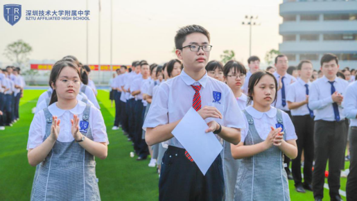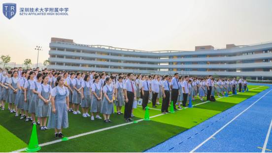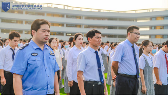 9 月13日早上七点半,深圳技术大学附属中学第三周晨会在雄壮的国歌声中拉开帷幕,全体师生庄严肃立,精神饱满地迎接新的一周到来。