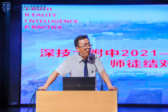 为了充分发挥骨干教师的示范引领作用,加大对青年教师的培养力度,打造一支素质过硬、业务精湛的师资队伍,推动学校教育教学质量快速提升,9月28日下午,深圳技术大学附属中学在多功能报告厅举行第一届“青蓝工程”师徒结对拜师仪式。教务处尹有存主任主持会议,田祚鹏校长、办公室覃君杨主任、总务处吴川主任、青蓝工程全体指导教师及青年学员出席本次活动。