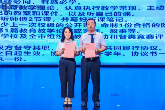 活动现场,八个学科组师徒依次上台签订了“青蓝工程”结对协议书,场面庄重而热烈,他们签下的不仅是一份承诺,更是一份沉甸甸的责任。