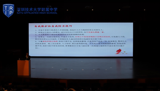 最后,主持人王娟带着同学们一起重温了匡老师讲座的部分重点内容,勉励同学们在今后成长的道路上,将今日所学牢记于心,做到自尊自爱,提高安全防范意识,学会保护自己。