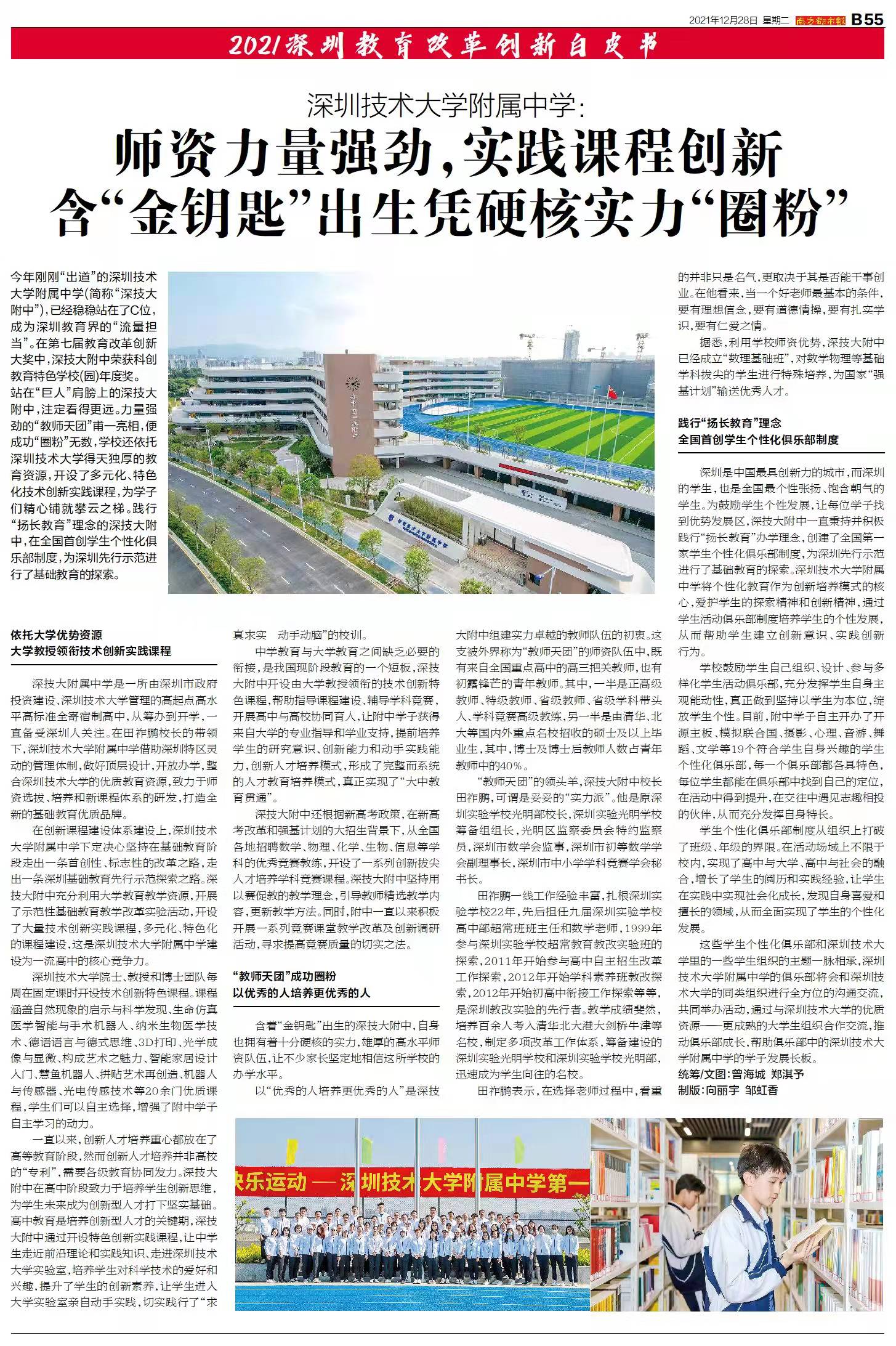 今年刚刚“出道”的深圳技术大学附属中学(简称“深技大附中”),已经稳稳站在了C位,成为深圳教育界的“流量担当”。在第七届教育改革创新大奖中,深技大附中荣获科创教育特色学校(园)年度奖。
