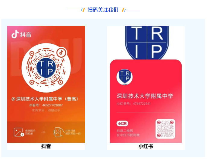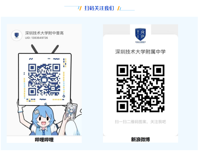 深圳技术大学附属中学希望每位学子都等在这里度过一段五彩缤纷的旅程。为此,我们践行“扬长教育”和“全面发展”的教育理念,全面实施素质教育,创新人才培养模式,引导学生主动适应社会,开阔眼界,提升学习源动力,促进书本知识和生活经验的深度融合。我们提供了丰富的平台和机会让学生参与各项活动,力争让每一位附中学子在高中三年的学习生活中都能找到自己的兴趣爱好,发扬自己的特长,培养自己的个性和核心素养,最终实现自己的独特价值。我们倡导“人人入社团、周周有活动”。学生们通过多彩的校园活动汇聚一堂,“争妍斗艳”,展现青春飞扬的活力。