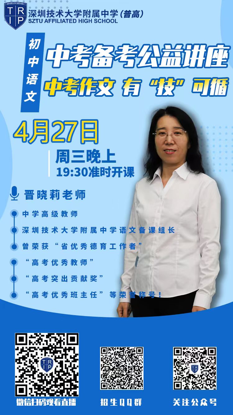 “让学生成为学校真正的主人!”深圳技术大学附属中学希望每位学子都等在这里度过一段五彩缤纷的旅程。为此,我们践行“扬长教育”和“全面发展”的教育理念,全面实施素质教育,创新人才培养模式,引导学生主动适应社会,开阔眼界,提升学习源动力,促进书本知识和生活经验的深度融合。我们提供了丰富的平台和机会让学生参与各项活动,力争让每一位附中学子在高中三年的学习生活中都能找到自己的兴趣爱好,发扬自己的特长,培...